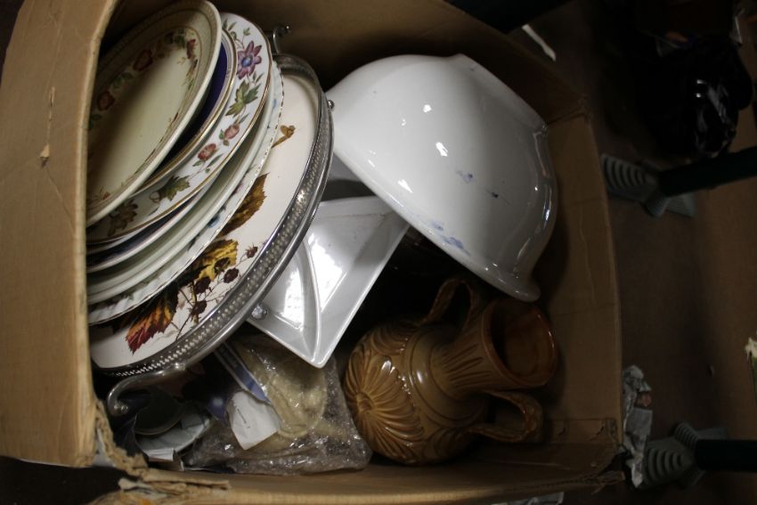 A LARGE ART NOUVEAU STYLE WEDGWOOD WALDEN BOWL TOGETHER WITH WHITE METAL BUTLER'S TRAY, A LARGE GREEK STYLE TWO HANDLED URN, TWO TEAPOTS, HORS D'OUVRES AND DINNERWARE