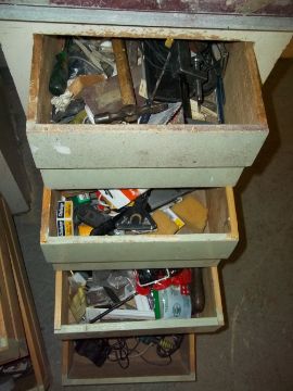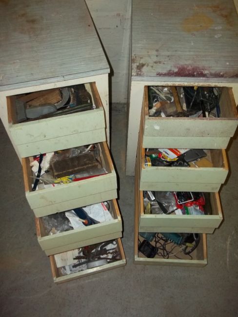 TWO FOUR-DRAWER VINTAGE TOOL CHESTS WITH TOOLS INCLUDED