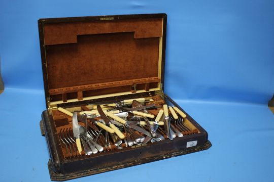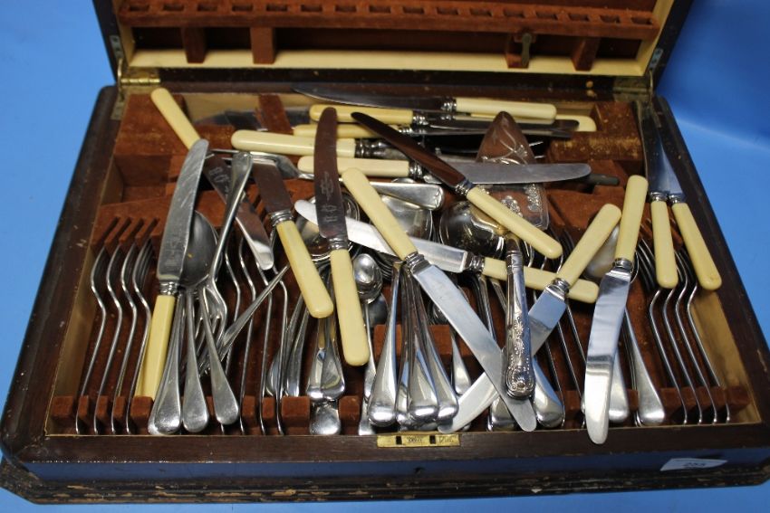 A CANTEEN OF CUTLERY IN WOODEN BOX