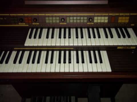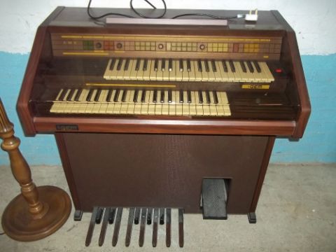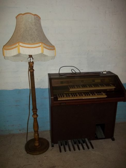 A GEM FLOOR STANDING ORGAN AND A SOLD WOOD FLOOR STANDING STANDARD LAMP