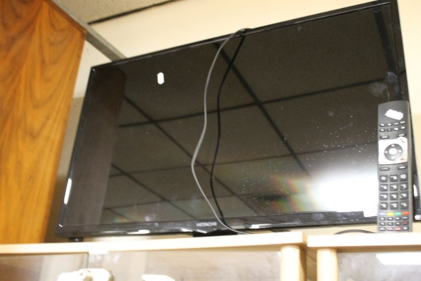 AN HITACHI 33" FLATSCREEN TV AND REMOTE CONTROL