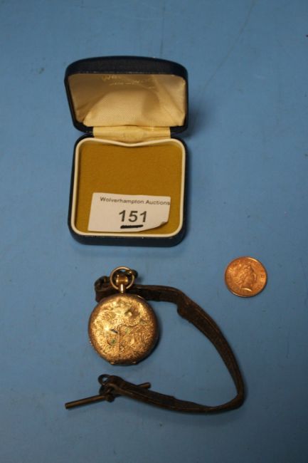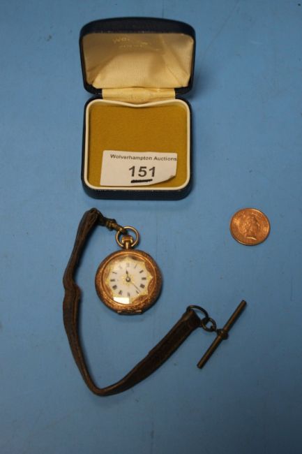 A VICTORIAN LADIES 9 CT GOLD FOB WATCH