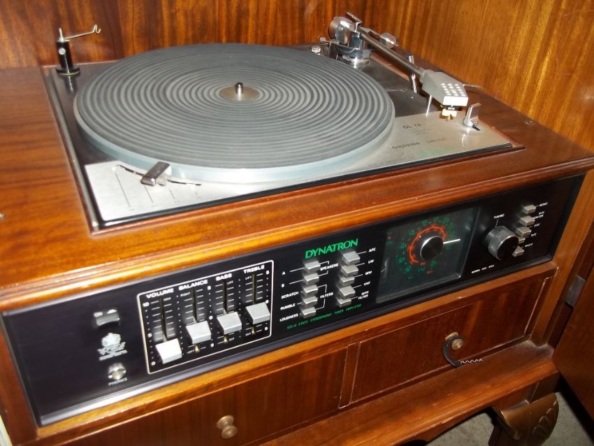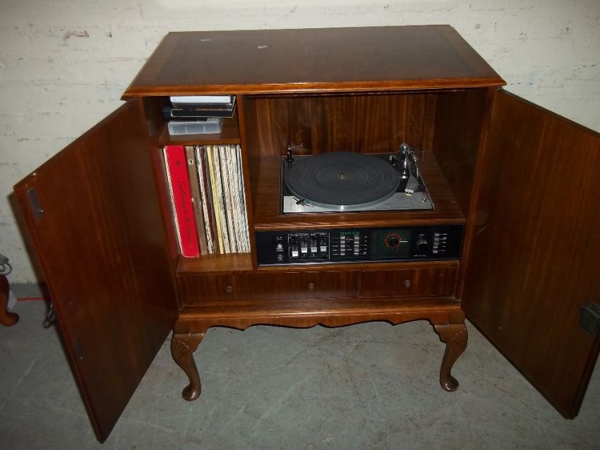 AN INLAID RETRO DYNATRON RADIOGRAM WITH QUEEN ANNE LEGS