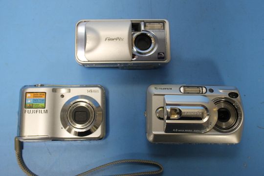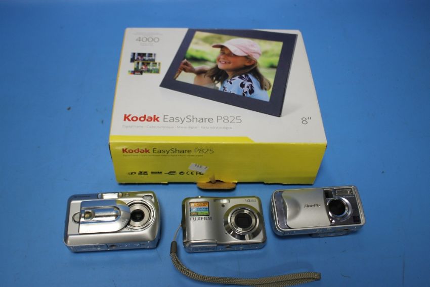 A BOXED KODAK EASYSHARE P825 ALONG WITH THREE DIGITAL CAMERAS