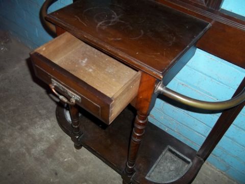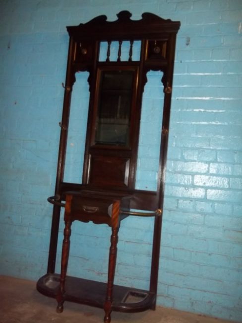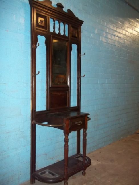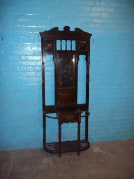 A MAHOGANY EDWARDIAN COAT HALL STAND, W 84 cm D 35 cm H 216 cm