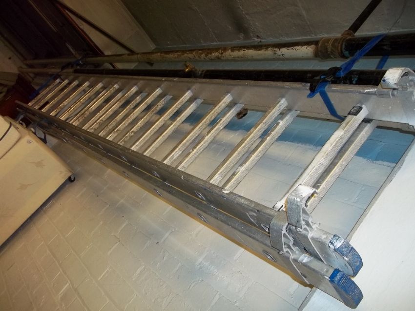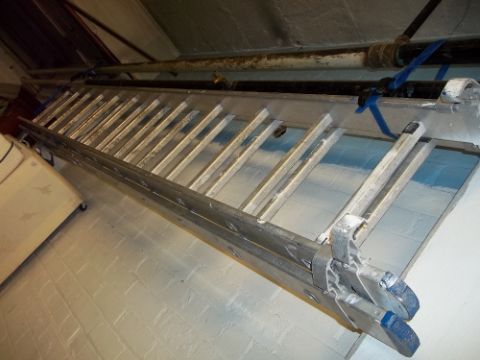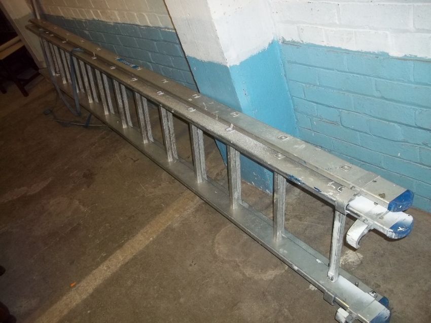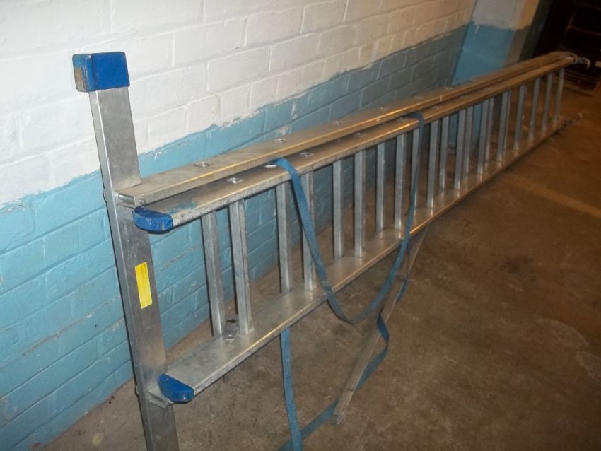 A TWELVE RUNG ALUMINIUM EXTENDING LADDER
