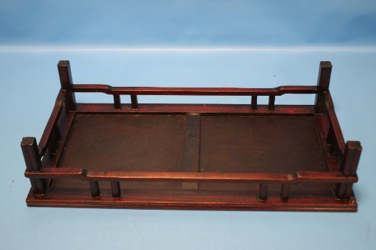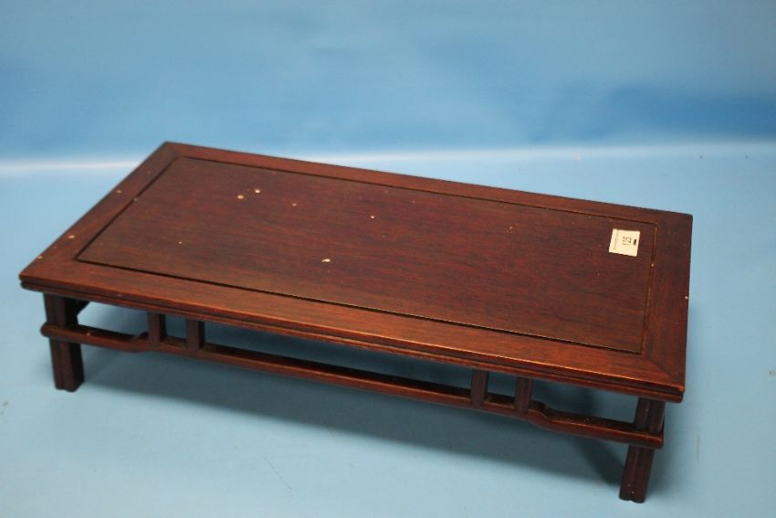 A CHINESE HARDWOOD SCHOLAR'S TABLE TOP LOW STAND RAISED ON FOUR LEGS