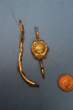 A VINTAGE LADIES 9 CT GOLD CASED WRISTWATCH AND STRAP A/F ALONG WITH TWO OTHER WATCHES