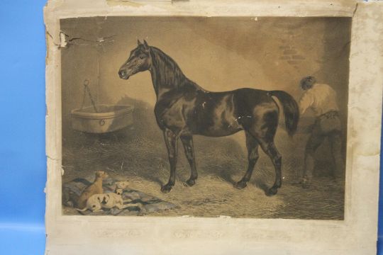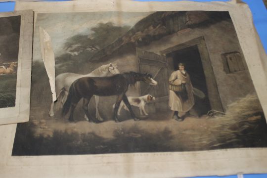 THREE MOUNTED ENGRAVINGS - HORSES FRIGHTENED BY LIGHTNING, THE HORSE FEEDER AND ANOTHER (3)