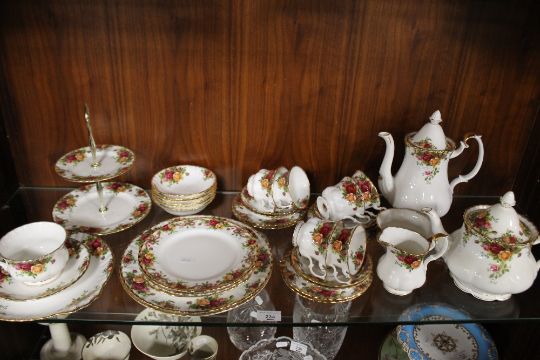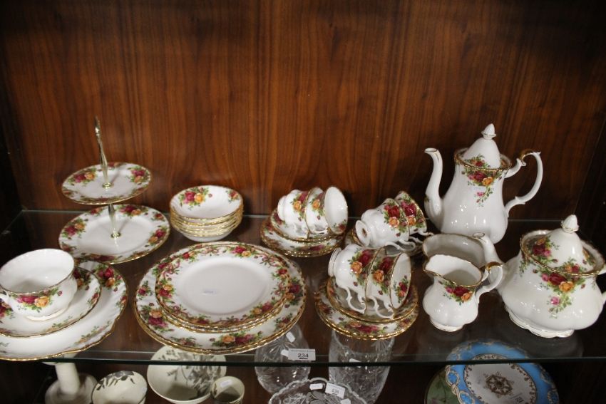 A QUANTITY OF ROYAL ALBERT "OLD COUNTRY ROSES" TEAWARE COMPRISING TEAPOT, COFFEE POT AND CAKE STAND ETC.