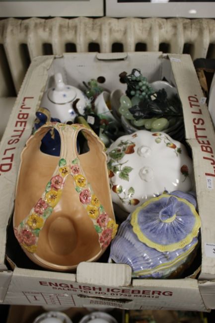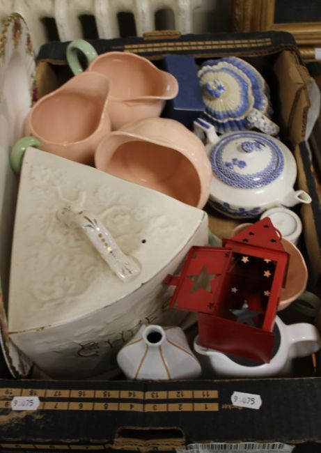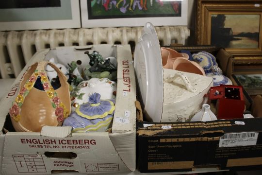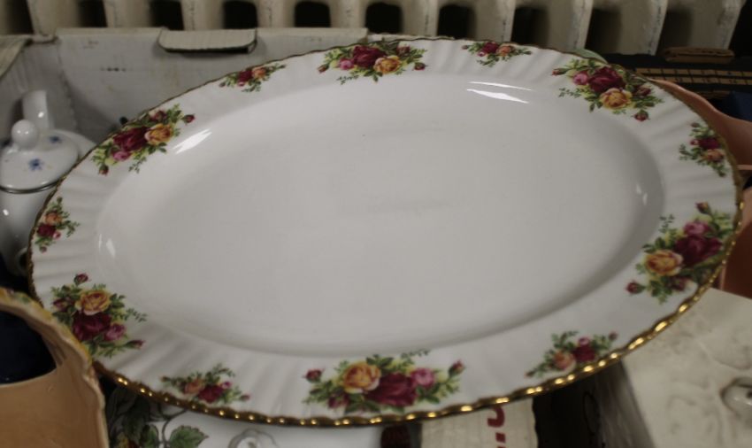 TWO BOXES OF CHINA TO INCLUDE OLD COUNTRY ROSES MEAT PLATE, LARGE CHEESE DISH, JUGS, FLOWER BASKETS ETC.