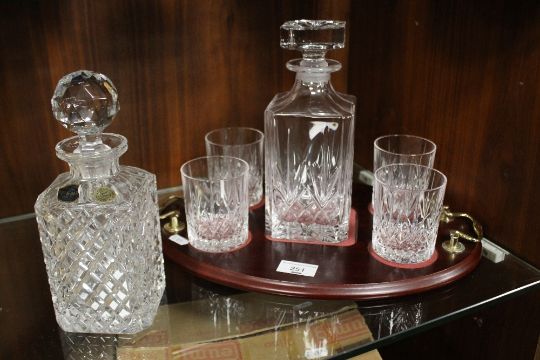 A DECANTER SET AND TUMBLERS ON TRAY AND ONE OTHER DECANTER