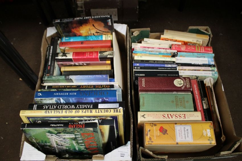 TWO TRAYS OF BOOKS TO INCLUDE POETRY, LITERATURE, HISTORY, GEOGRAPHY ETC.