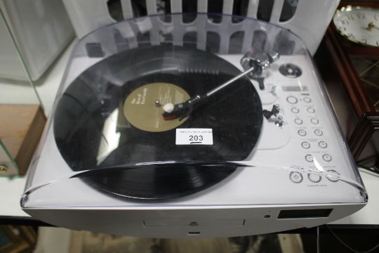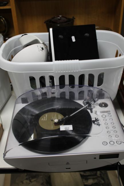 A ROBERTS DAB RADIO, AN OPTI AURA, AND A MODERN RETRO TURNTABLE