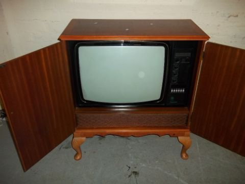 AN INLAID RETRO DYNATRON TV WITH QUEEN ANNE LEGS