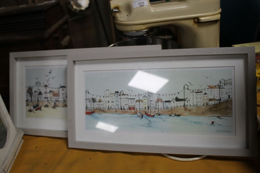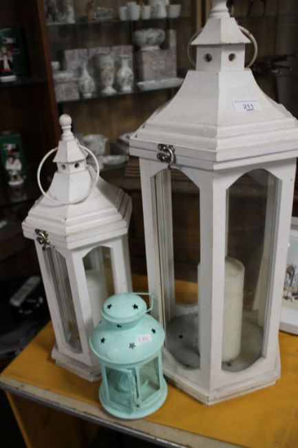 THREE CANDLE LANTERNS, TWO FRAMED PRINTS AND A COAT RACK