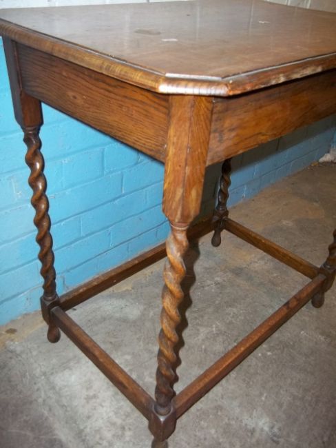 AN ANTIQUE BARLEY TWIST HALL TABLE IN OAK