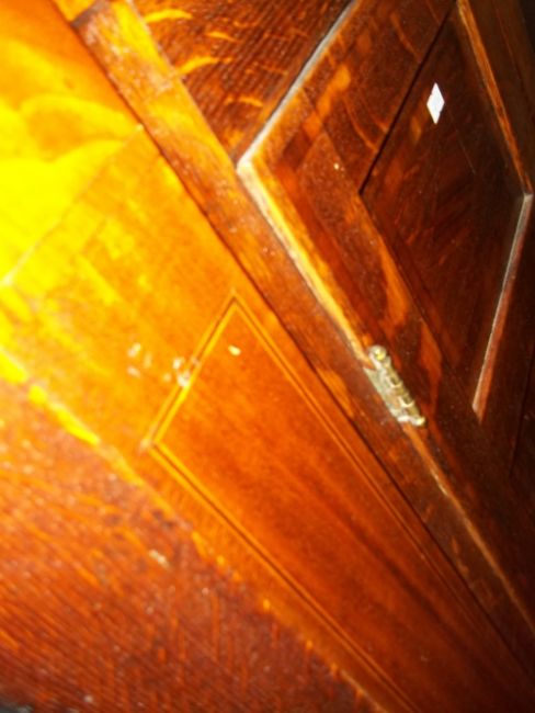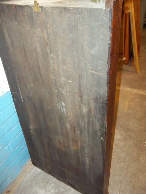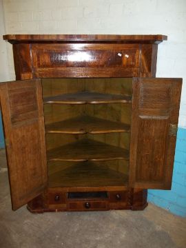 AN ANTIQUE EDWARDIAN WALL HANGING OAK INLAID CORNER CUPBOARD LOCKING WITH DRAWER