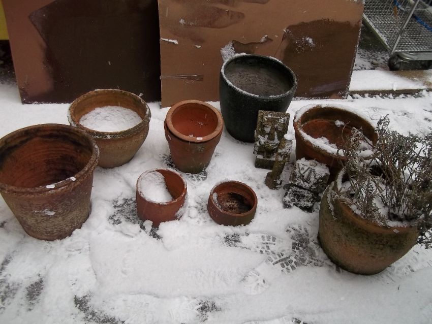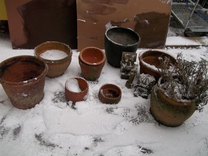 A SELECTION OF TERRACOTTA AND CONCRETE PLANTERS