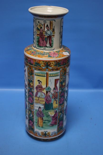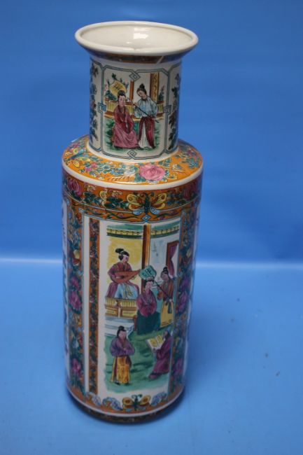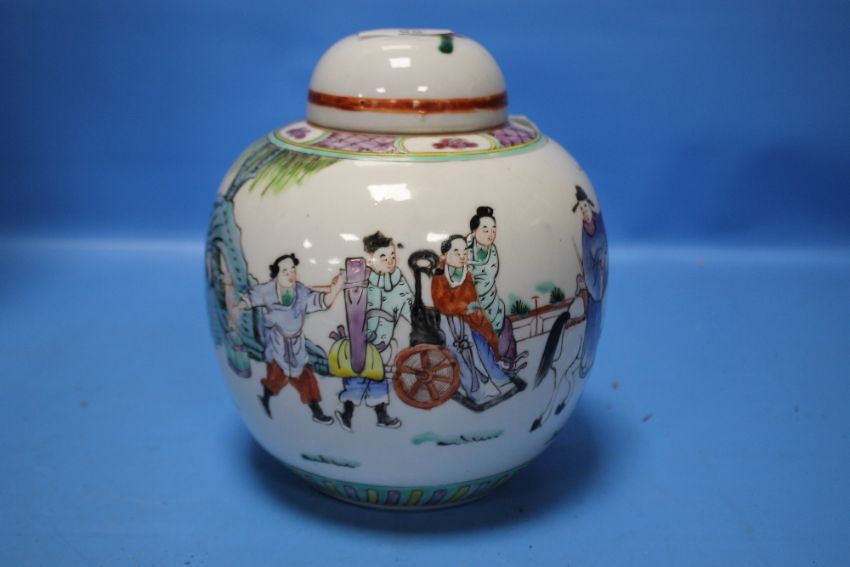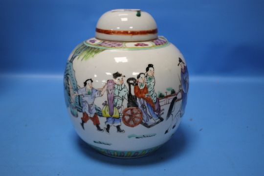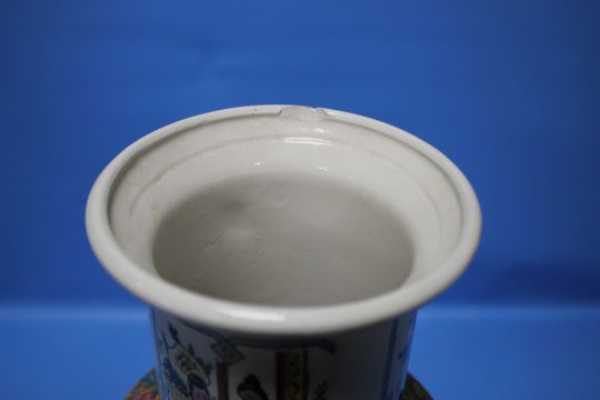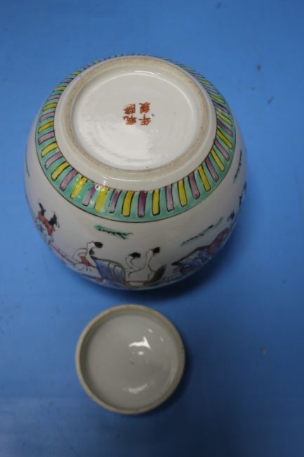 THREE PIECES OF ORIENTAL STYLE CERAMICS Condition Report: The large vase has a chip to the inner rim.The jug has a small crack to the inner rim, the lidded vase appears to be ok