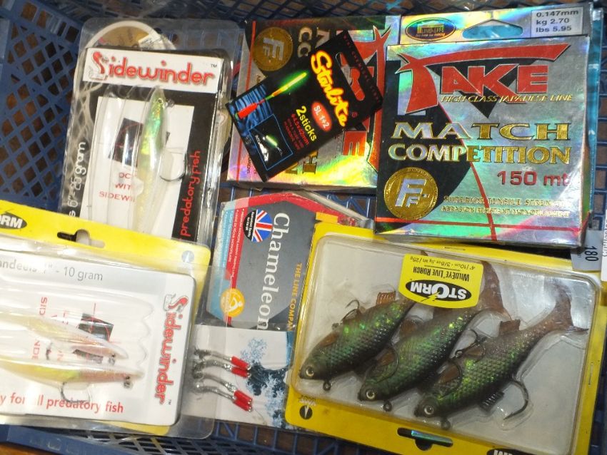 A SMALL BOX OF FISHING ITEMS TO INCLUDE LURES