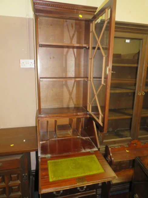 A REPRODUCTION MAHOGANY SLIM BUREAU BOOKCASE H-194 W-52 CM