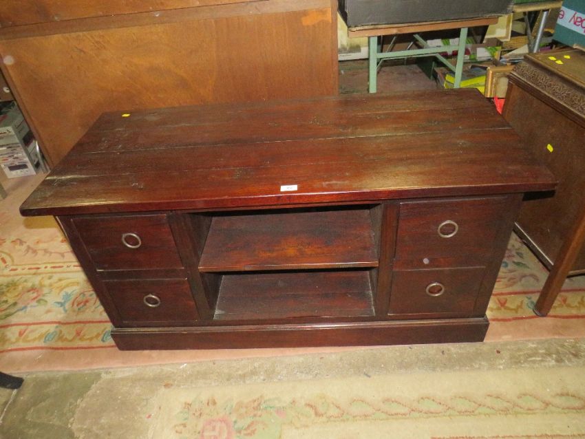 A LARGE MODERN COLONIAL STYLE LOW CABINET H-62 W-126 CM
