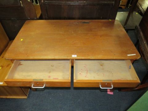 A VINTAGE STYLE TWO DRAWER SCHOOL TYPE DESK H-76 W-122 CM