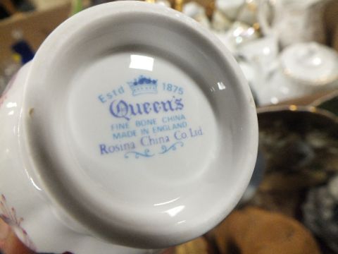 A BOX OF ASSORTED CHINA TO INCLUDE QUEENS CHINA