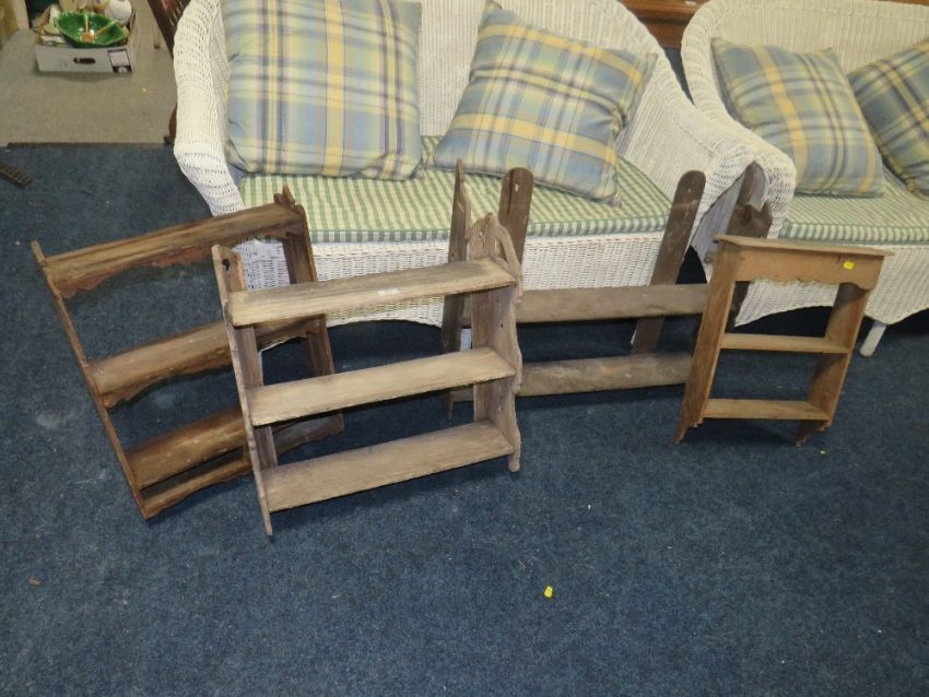 FOUR ASSORTED VINTAGE HANGING SHELVES