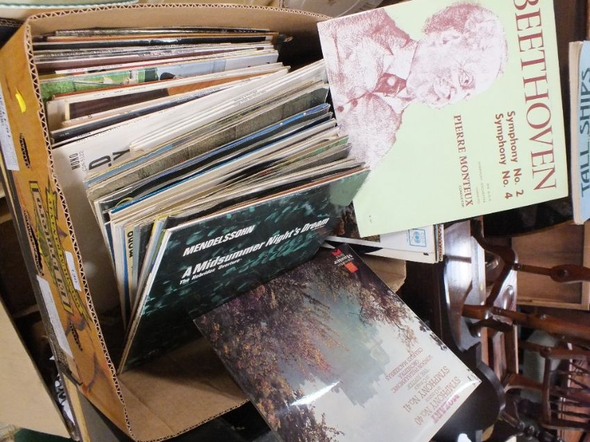 A TRAY AND TWO CASES OF VINTAGE LP RECORDS, 78S ETC., TO INCLUDE CLASSICAL EXAMPLES