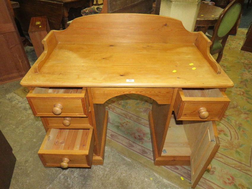 A PINE TRAY TOP TWIN PEDESTAL WASHSTAND/DESK H-96 CM W-106 CM