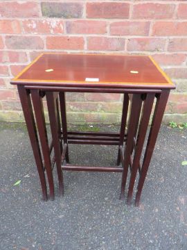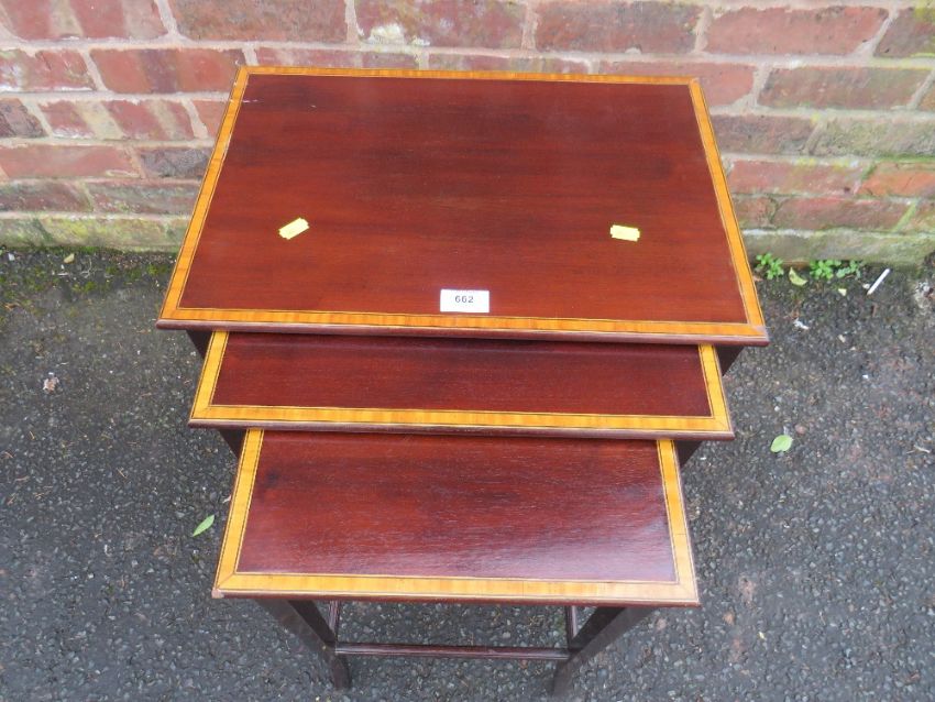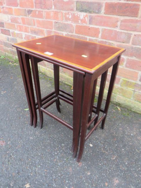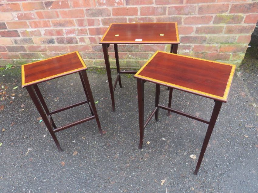 A MAHOGANY INLAID NEST OF THREE TABLE H-61 W-48 CM LARGEST