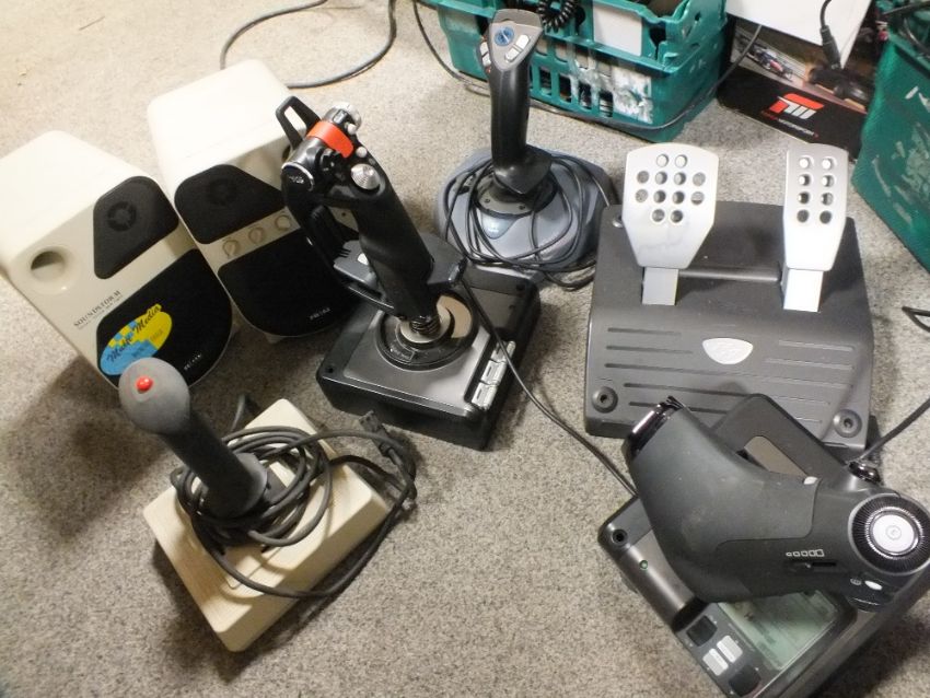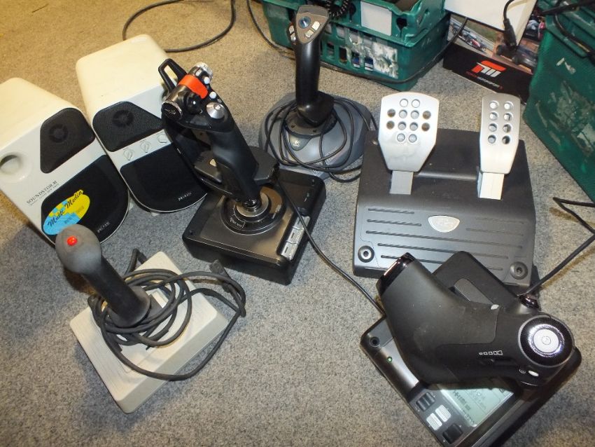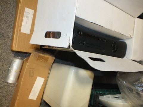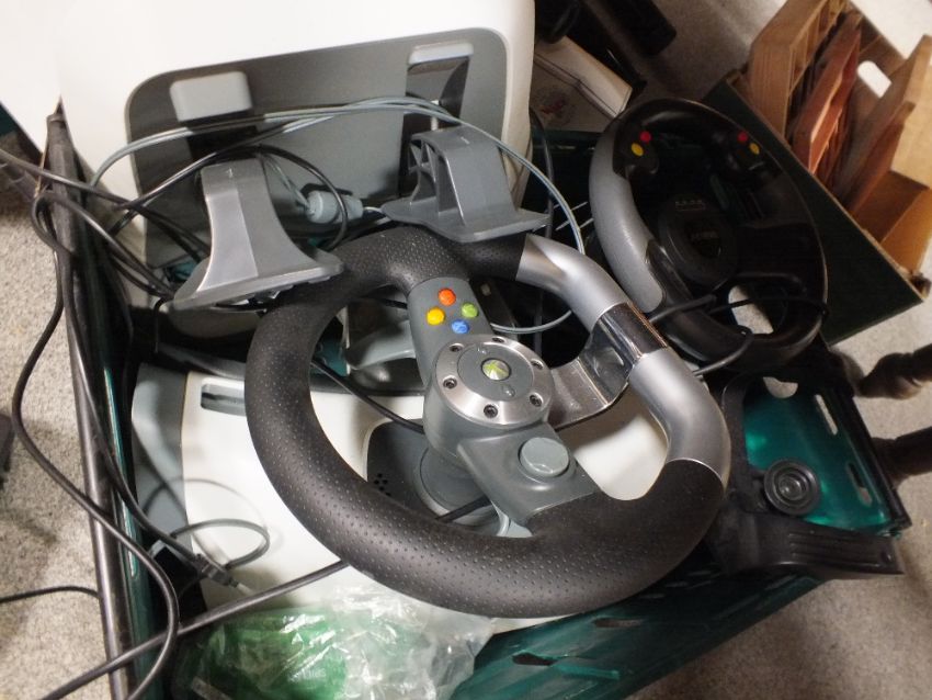 A QUANTITY OF ELECTRICALS TO INCLUDE GAME CONSOLE STEERING WHEELS, BOXED XBOX 360 ETC.