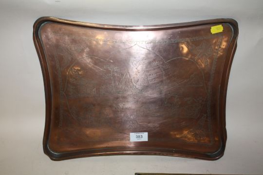 THREE ORIENTAL COPPER AND BRASS TRAYS