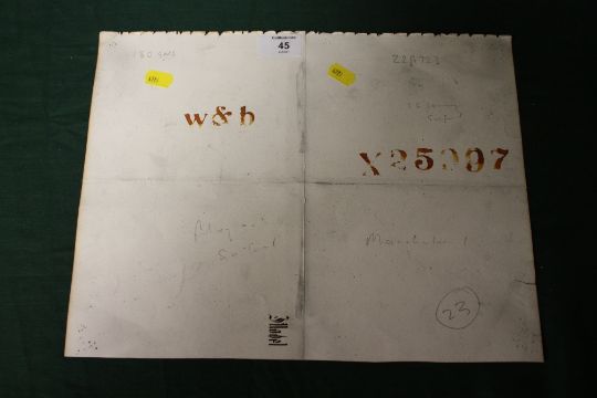 Condition Reports: Condition reports are provided upon request and the absence of a report on the website does not imply that a lot is without imperfections. Condition reports are provided on the understanding that they are carried out to the best of our ability and that these reports refer solely to the condition, not the age or attribution, of a lot. Books are sold as seen, and are not guaranteed to be complete. Condition reports should in no case be considered a replacement for viewing in person or a service for which we accept any liability whatsoever.