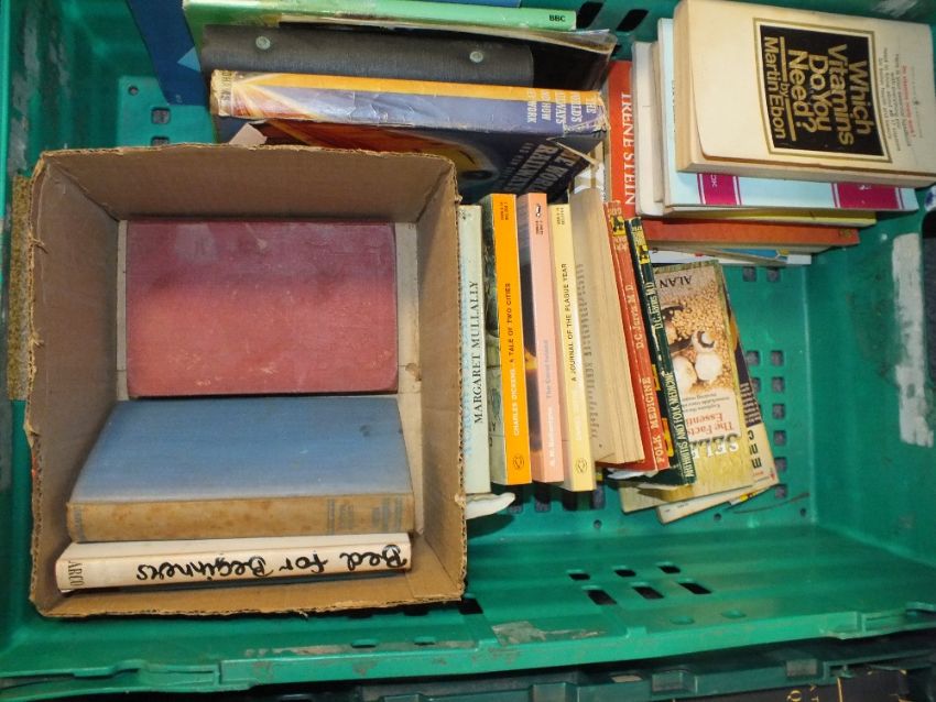 THREE TRAYS OF VINTAGE BOOKS (PLASTIC TRAYS NOT INCLUDED)