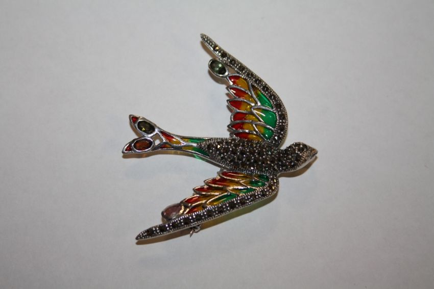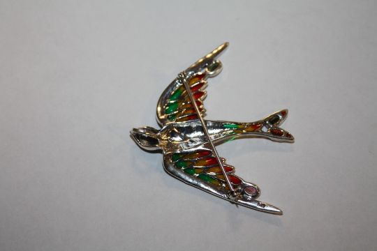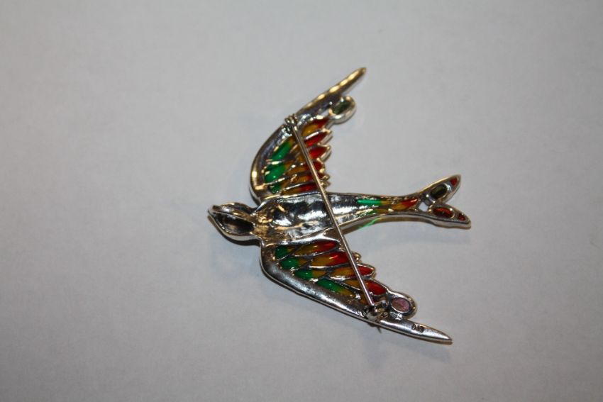 A PLIQUE-A-JOUR BROOCH IN THE FORM OF A BIRD IN FLIGHT