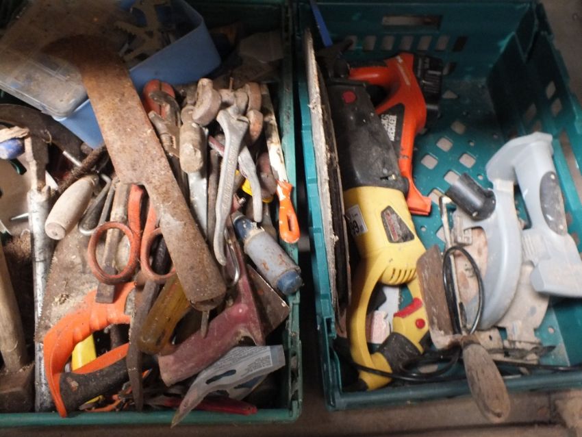 SIX TRAYS OF HANDTOOLS AND PARTS ETC ( PLASTIC TRAYS NOT INCLUDED )