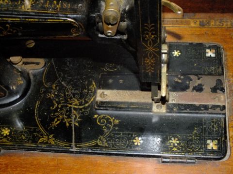AN INLAID MAHOGANY CASED ANTIQUE FRISTER AND ROSSMANN SEWING MACHINE