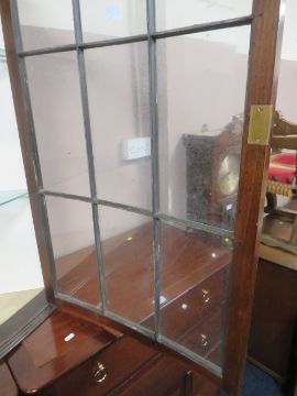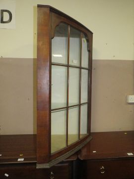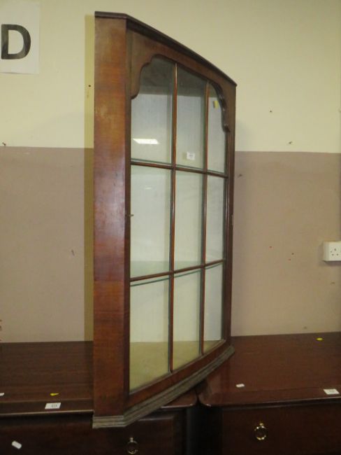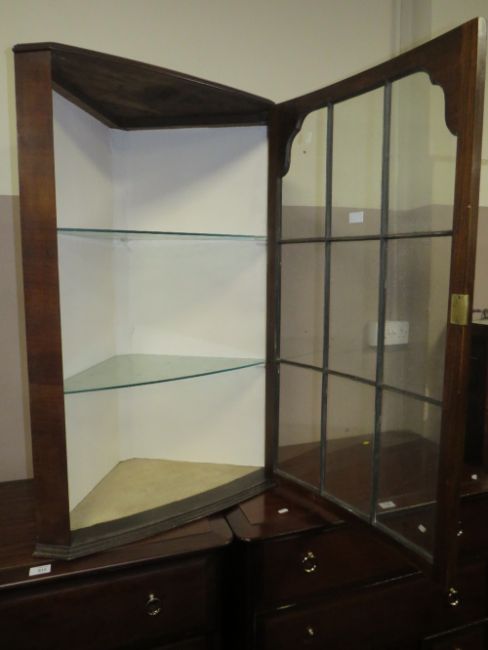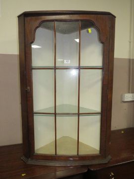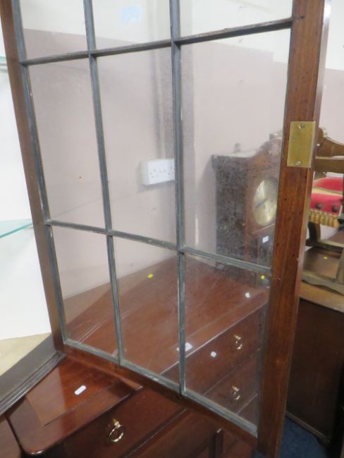 AN ANTIQUE WALNUT GLAZED HANGING CORNER CABINET H-100 CM