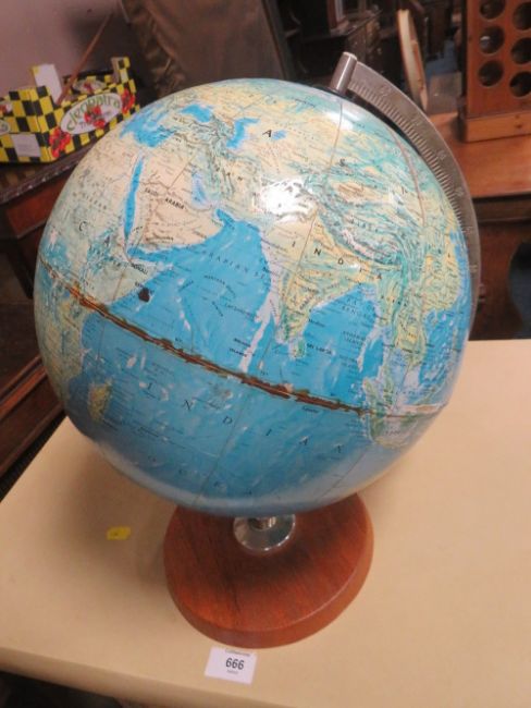 A MODERN CREAM OPEN DISPLAY STAND H-103 W-66 CM WITH A MODERN WORLD GLOBE (2)