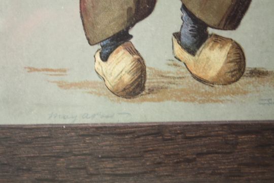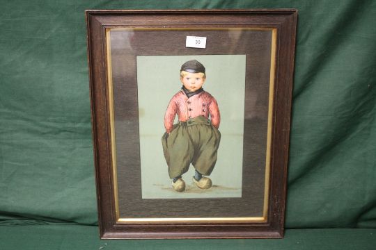 A VINTAGE FRAMED AND GLAZED PRINT OF A DUTCH BOY, 21.5 X 31 CM