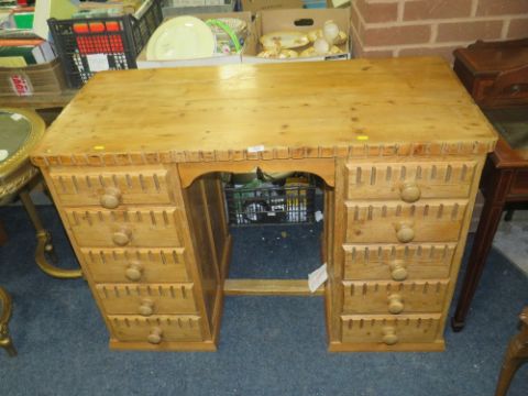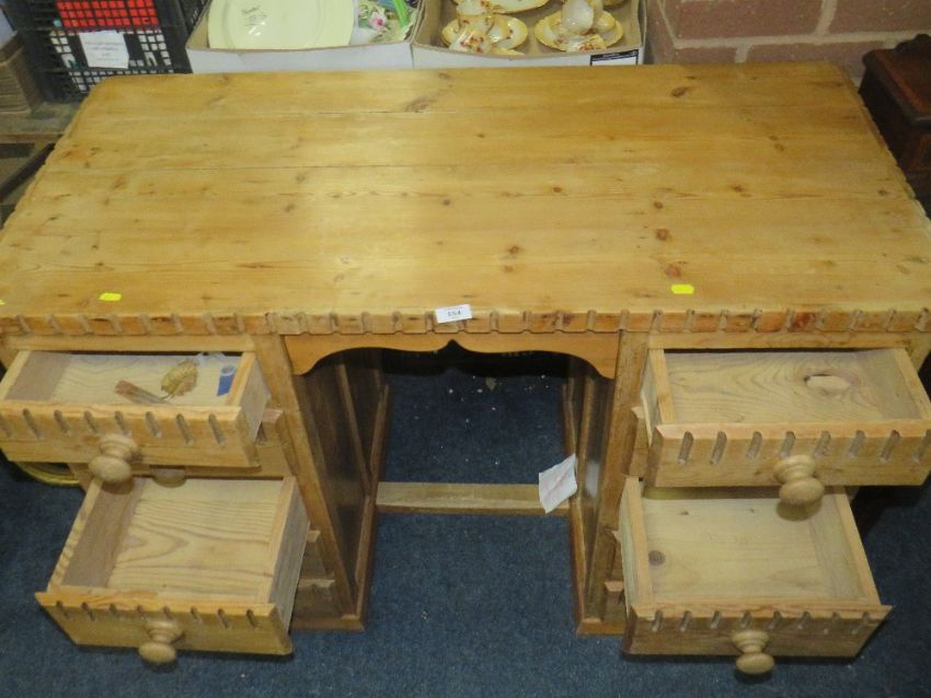 AN UNUSUAL PINE TWIN PEDESTAL DESK H-81 W-118 CM