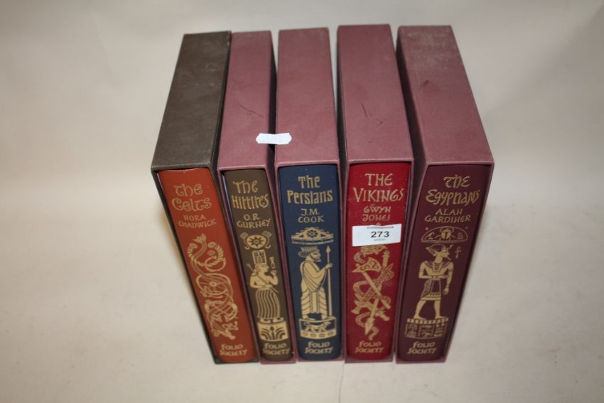 FIVE FOLIO SOCIETY BOOKS, 'THE CELTS', 'THE HITTITES', 'THE PERSIANS', 'THE VIKINGS', AND 'THE EGYPTIANS'