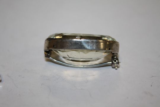 A SILVER MOUNTED BROOCH SET WITH A LARGE OVAL STONE, WITH 3.5 CM, TOGETHER WITH A CROSS PENDANT ON CHAIN