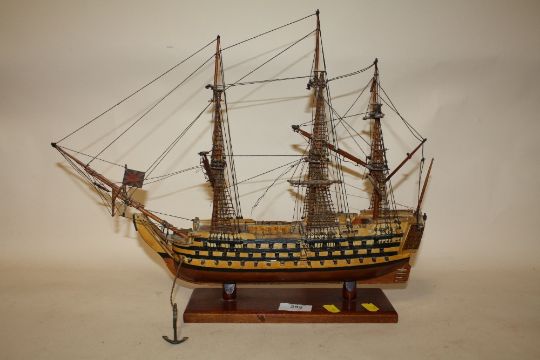 A HAND BUILT WOODEN MODEL OF A GALLEON, H 35.5 CM