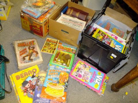 A LARGE COLLECTION OF VINTAGE COMICS AND ANNUALS TO INCLUDE BULLET COMICS, BEANO COMICS AND WAR RELATED BOOKS