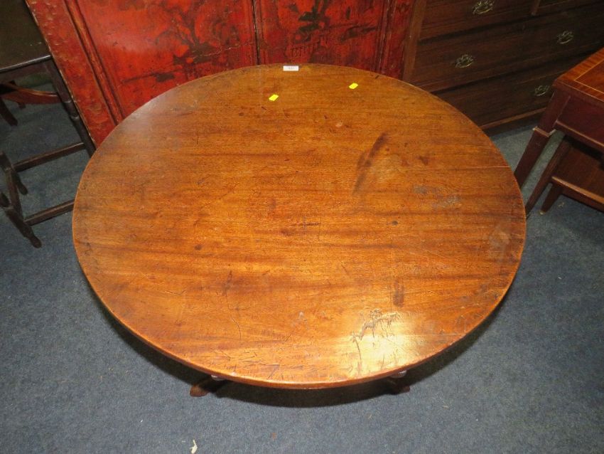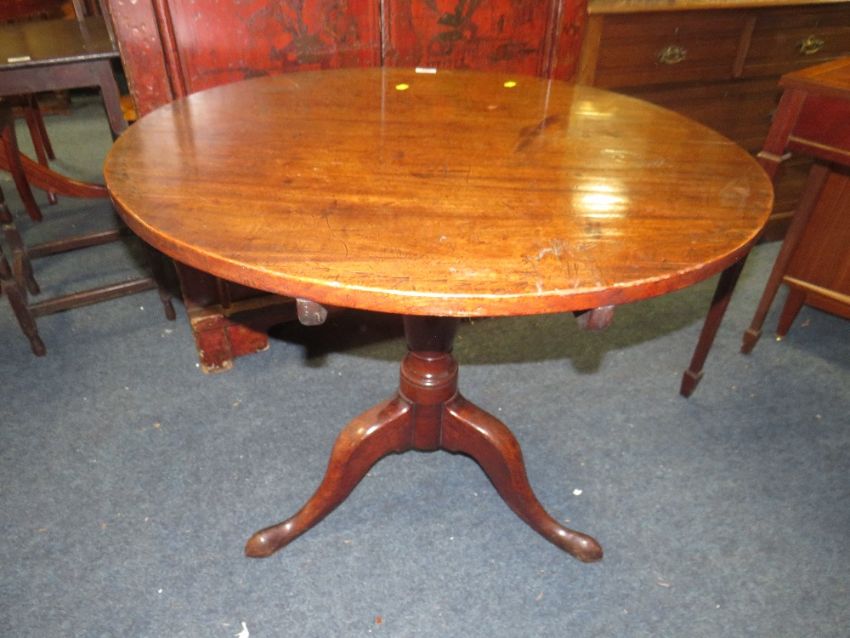 A GEORGIAN MAHOGANY TILT-TOP PEDESTAL TABLE DIA-85 CM