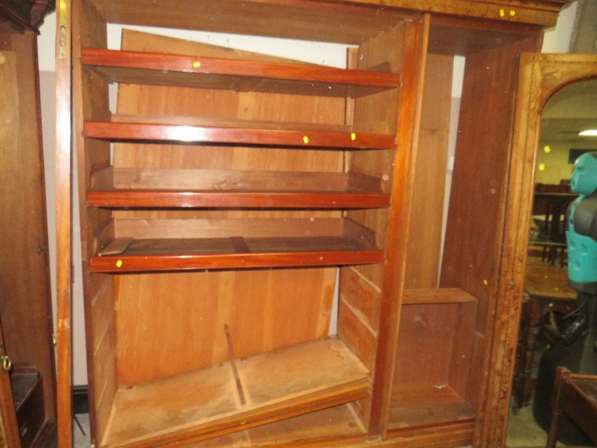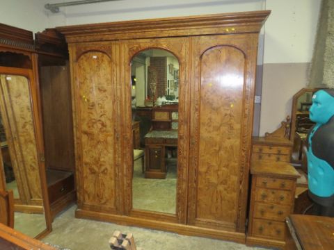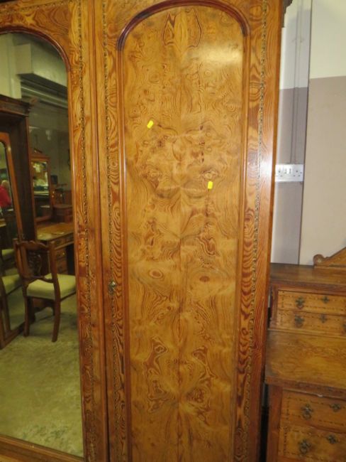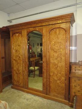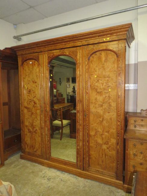 A LARGE VICTORIAN AESTHETIC INLAID TRIPLE WARDROBE H-229 W-215 CM